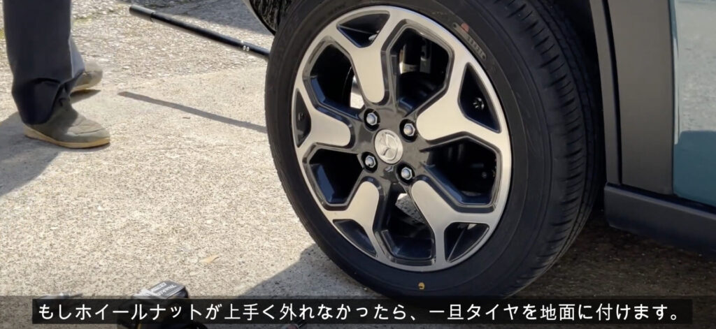 あとは同様のやり方で全てのホイールナットを取り外し、タイヤを交換するだけです。