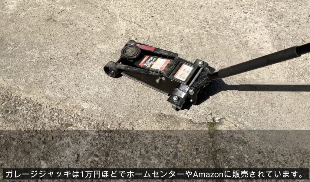 タイヤ交換に必要な工具を揃えたところで、さっそくガレージジャッキで車体を持ち上げましょう。